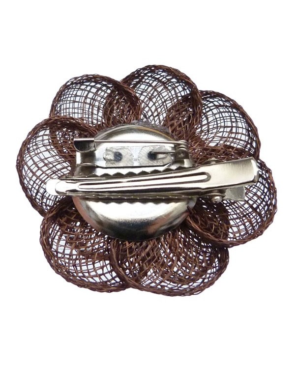 Fleur en sisal Marron ornée d'un strass carré blanc.