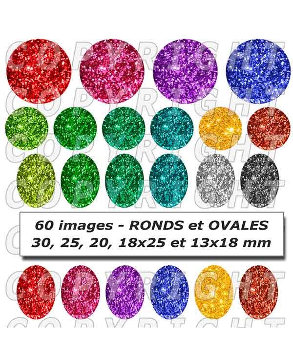 12 images différentes déclinées en 5 formats ronds et ovales :