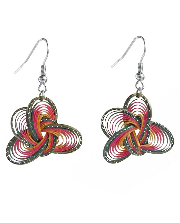Boucles d'oreilles en bambou teinté de trois couleurs.
