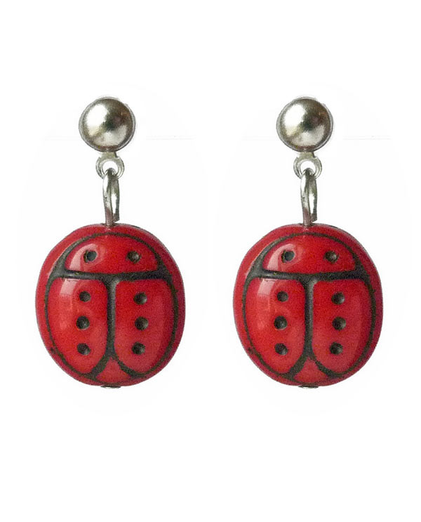 Ces bestioles porte bonheur toutes mignonnes, sont en verre de bohème, leur relief est en recto et verso, sont suspendus a des clous d'acier inoxydable (ne rouille pas, hypoallergénique).