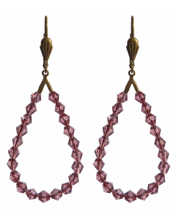 Des boucles d'oreilles en forme de grandes gouttes violettes (violet prune pour être précise). Elles sont suspendues à des attaches de type dormeuses très chic.