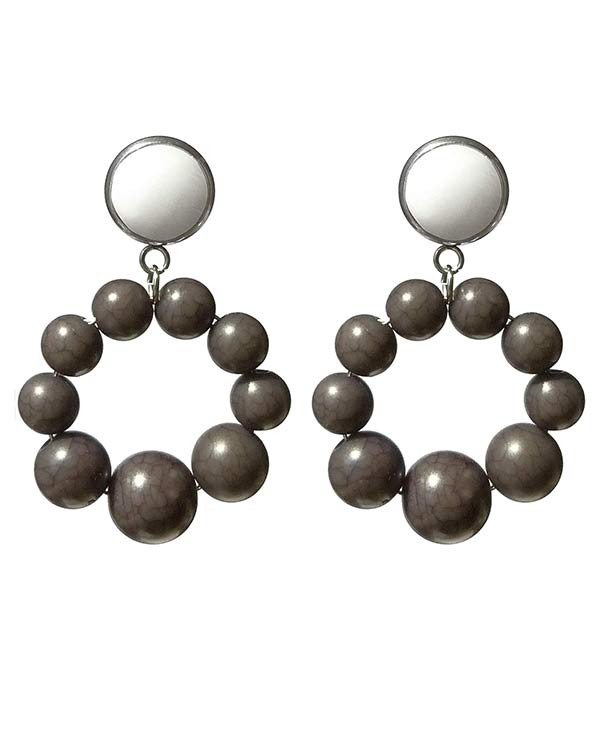 Boucles d'oreilles style vintage très tendances, en formes de créoles de perles gris anthracite avec un effet marbré ton sur ton discret. Elles sont confortables à porter (assez légères).
