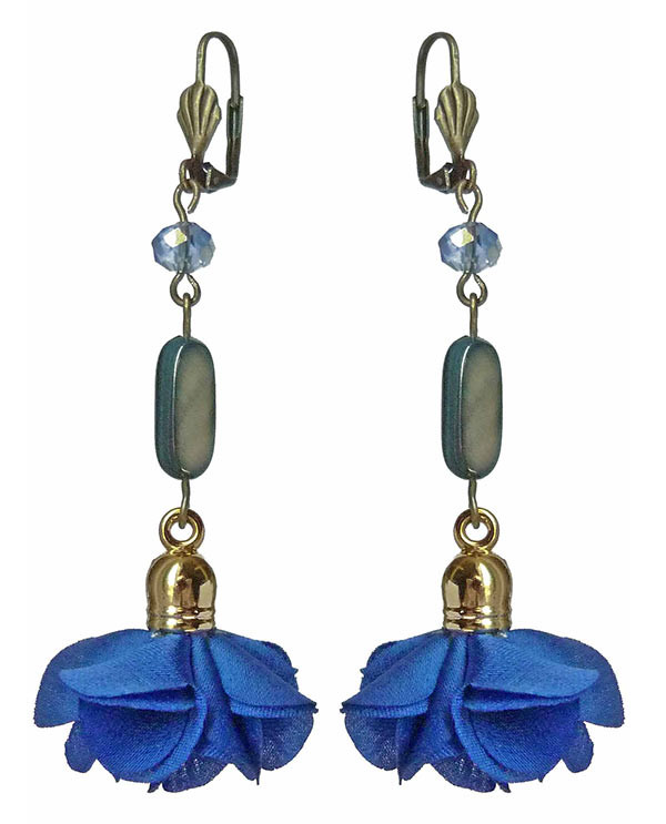 boucles d'oreilles bleu roi et grises. Un élégant mélange.
