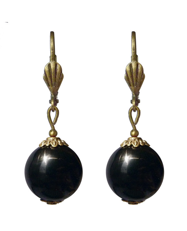 Boucle d'oreille onyx noir et doré - dormeuses gothiques élégantes et sobres.