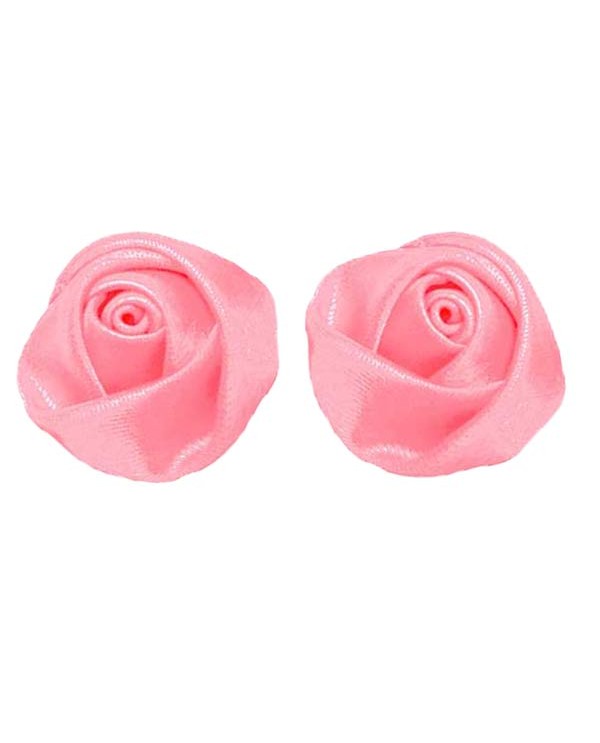 Une paire de boucles d'oreilles puces, fleur de satin rose dragée.