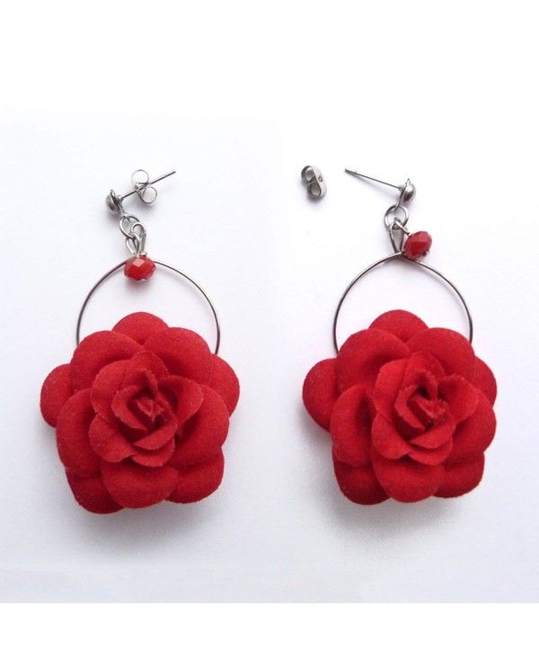 Boucles d'oreilles, des créoles à fleur rouge, très originales.