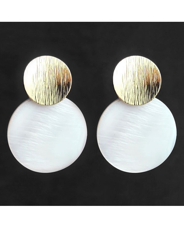 Boucles d'oreilles puces rondes dorées et disque tout en nacre blanche naturelle