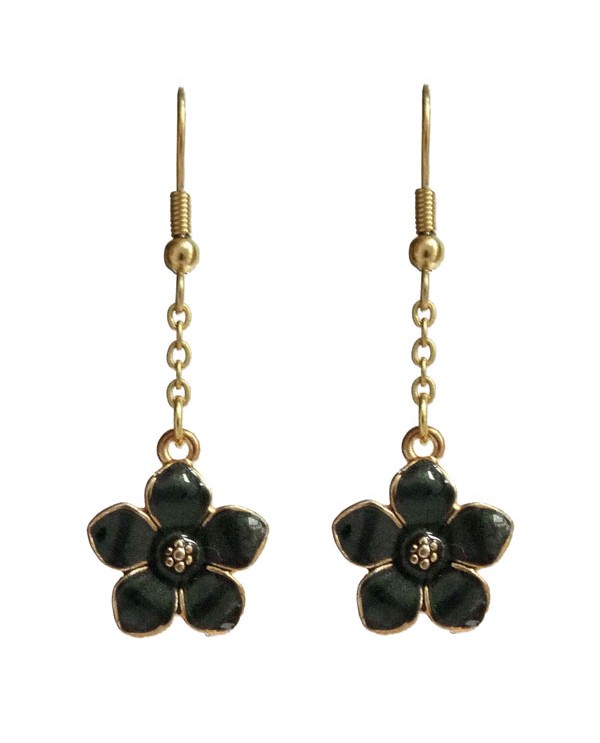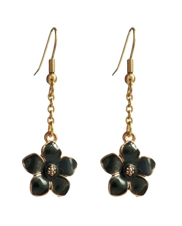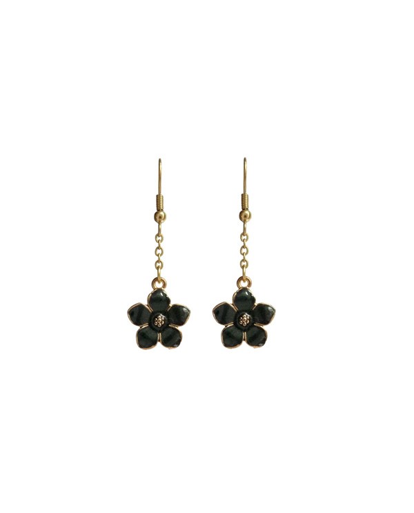 Optez pour l'élégance légère avec ces boucles d'oreilles pendantes en acier inox à finition doré, mettant en valeur de charmantes fleurs noires émaillées. Légères avec une attache crochet sobre, pour un style chic sans très versatile.