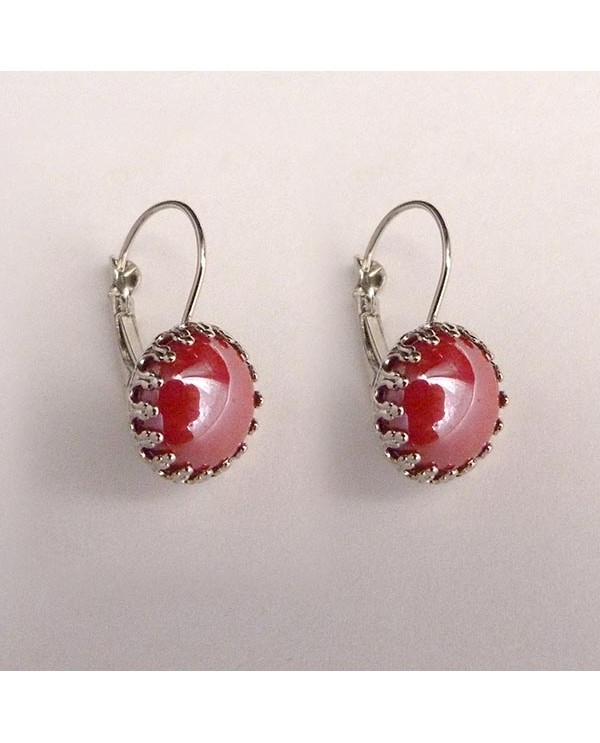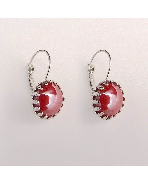 Boucles d'oreilles dormeuses au style rétro, accentuées par un cabochon rouge élégant. Attaches argentées ou bronze au choix. Livraison suivie.