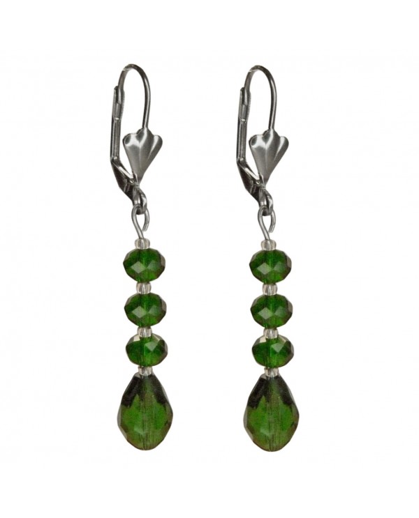 Les perles en verre taillé vert olive sont légères. Les perles transparentes sont en verre tchèque.