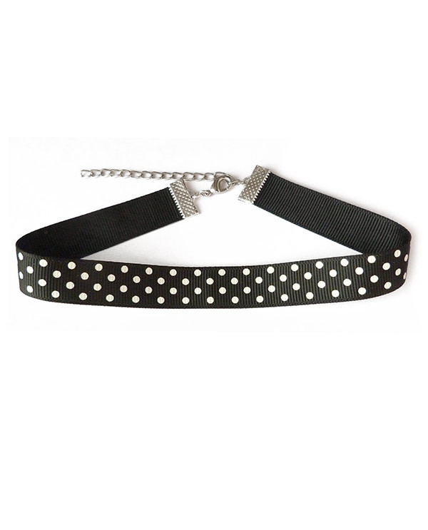 Collier ras de cou rétro, inspiré par l'univers des pin up avec son pimpant ruban à pois blanc sur fond noir.