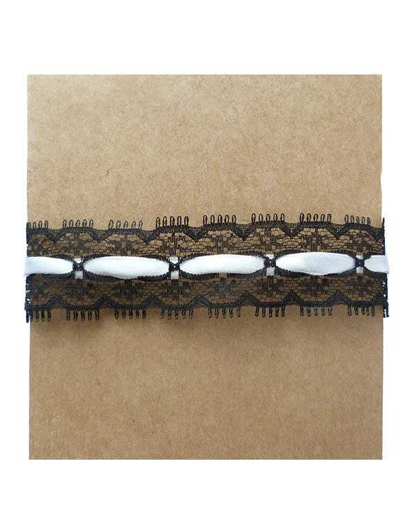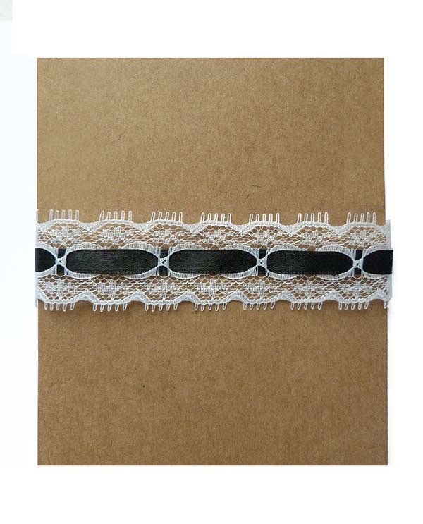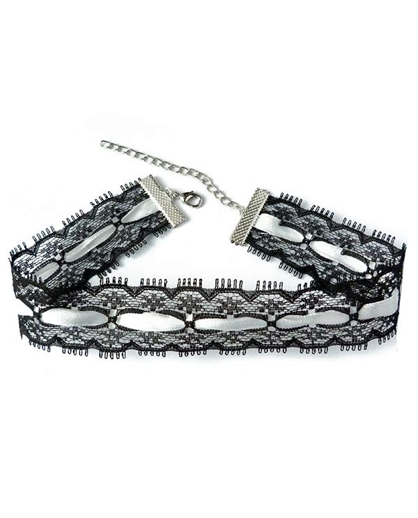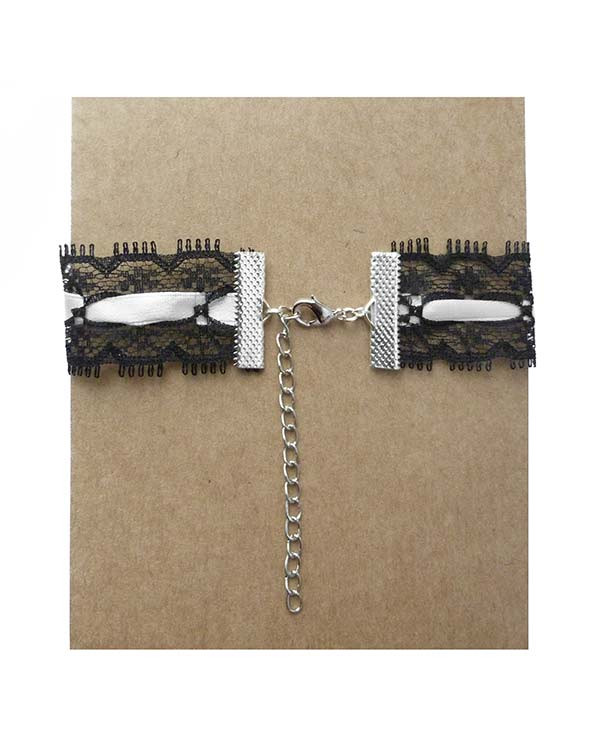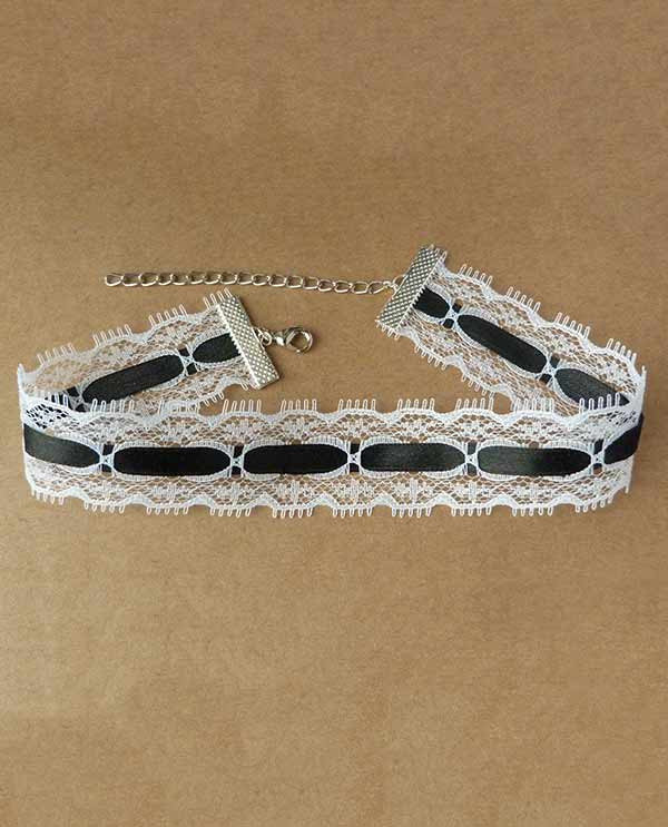 Collier type ras de cou noir et blanc, en rubans de dentelle et de satin, chic, inspiré du style gothique lolita.