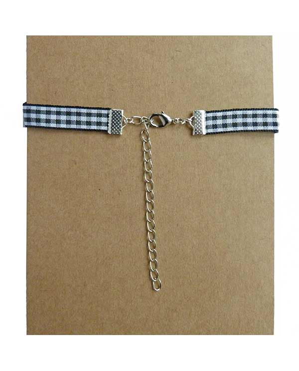 Collier ras de cou fin en textile à carreaux noir et blanc. Simple et chic pour les femmes qui aiment mettre une touche de rétro dans leur style.