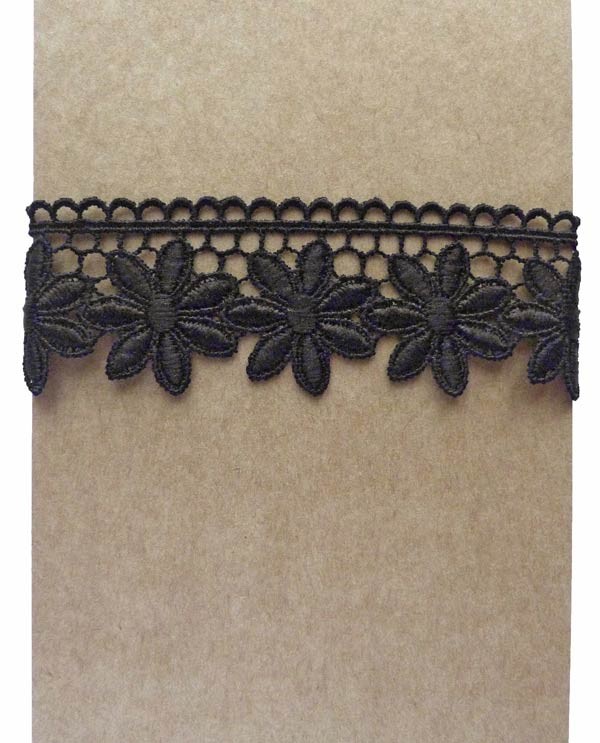 Collier ras de cou choker en dentelle noire de qualité à motif de fleurs.
