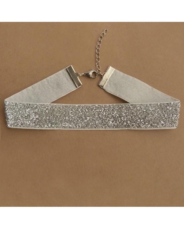 Collier ras de cou large, joli tour de cou choker en velours à paillettes complètement argenté.
