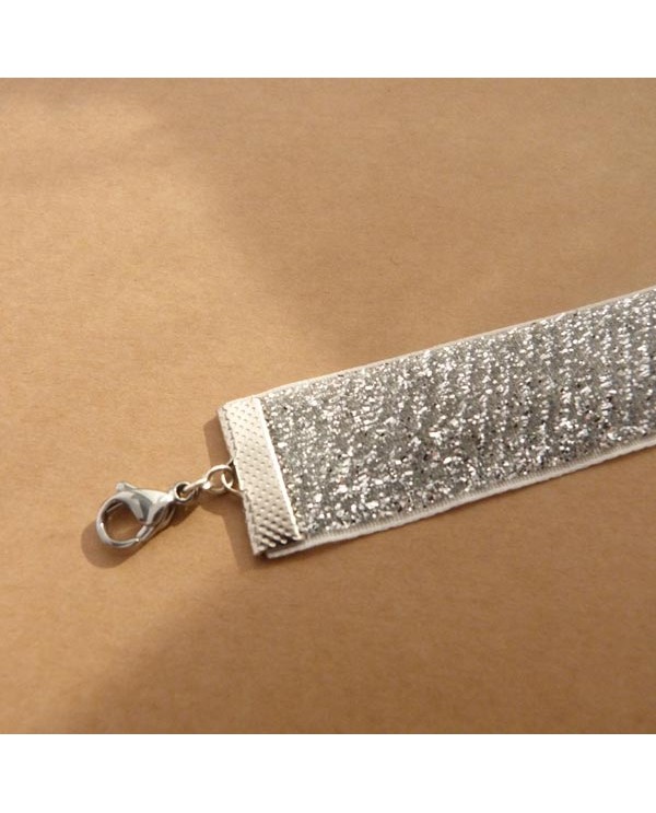 Collier ras de cou large, joli tour de cou choker en velours à paillettes tout argenté.