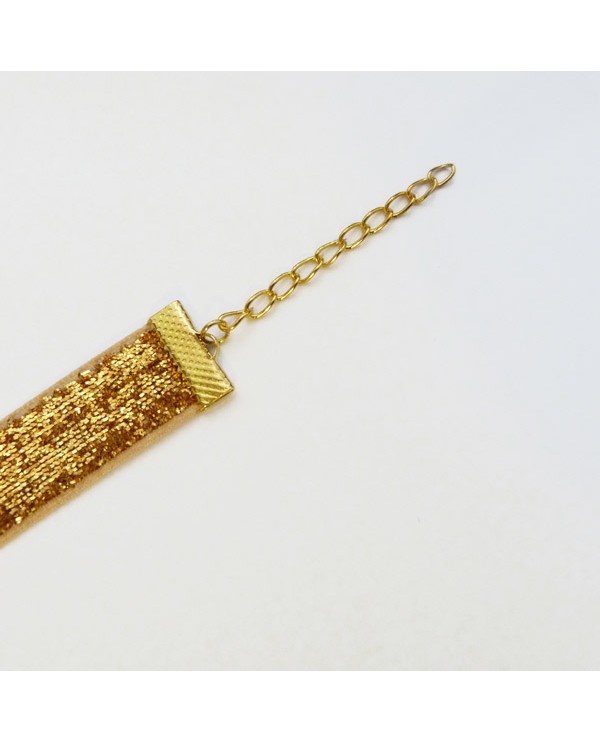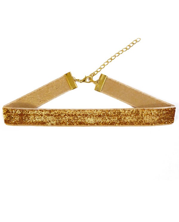 Collier ras de cou large, joli tour de cou choker en velours à paillettes entièrement doré.