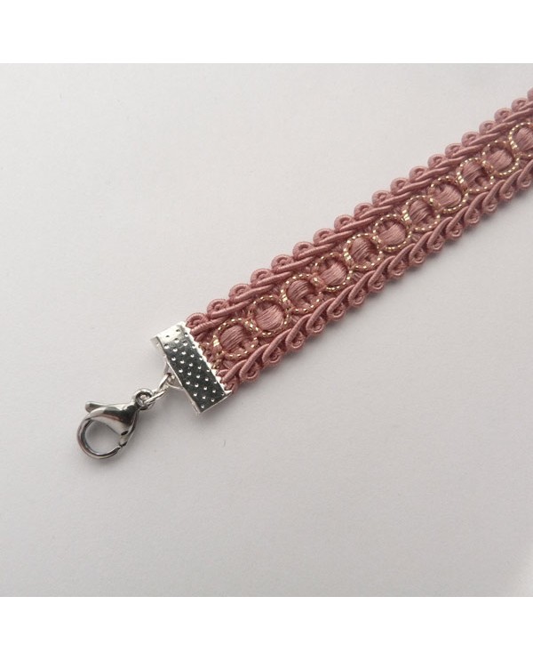 Collier ras de-cou en dentelle vieux rose. Choker délicat avec des filaments dorés.