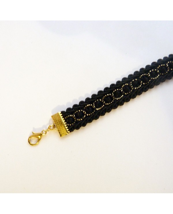 Collier ras de-cou en dentelle noir et doré. Choker délicat avec des filaments dorés.