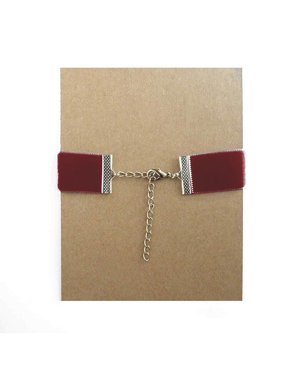 Collier ras de cou rouge bordeaux en velours large, de type choker.