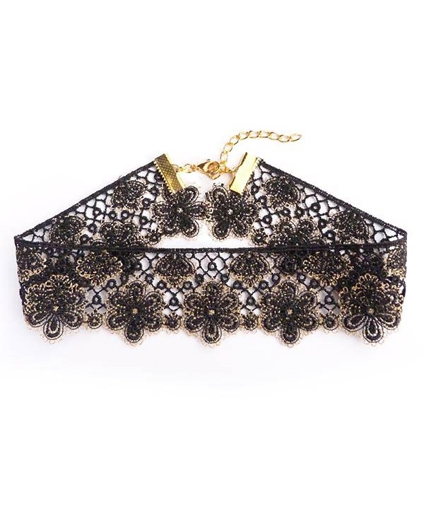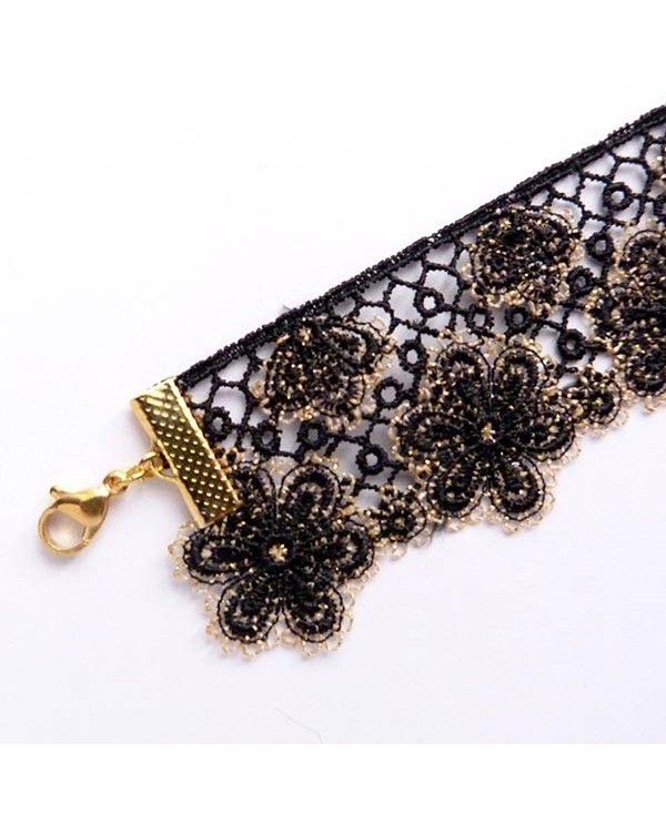Plongez dans le charme rétro avec ce collier ras de cou en dentelle florale noire et dorée. Large tout en étant délicate, ajustable, il est fabriqué avec soin. Un cadeau parfait avec différentes tailles proposées.