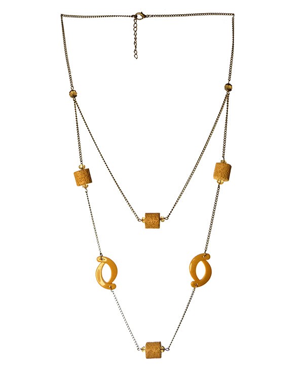 Ce grand collier type sautoir, aux perles jaune moutarde égaie votre journée, sur le gros pull d'hiver ou la robe d'été nonchalante.