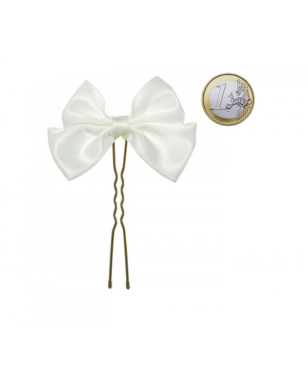 un grand noeud papillon de satin blanc est fixé sur chaque épingle à chignon (environ 4,5 x 6 cm).