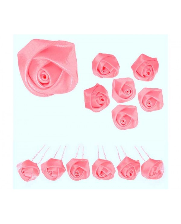 Lot de 6 épingles à cheveux. Chaque épingle est surmontée d'une rose en satin rose clair, comme les danseuses classique.