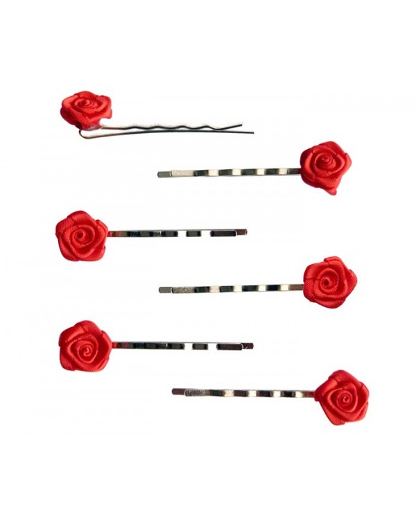Sur chaque pince est fixée une mini rouge rose en satin d'une belle teinte rouge passion.
