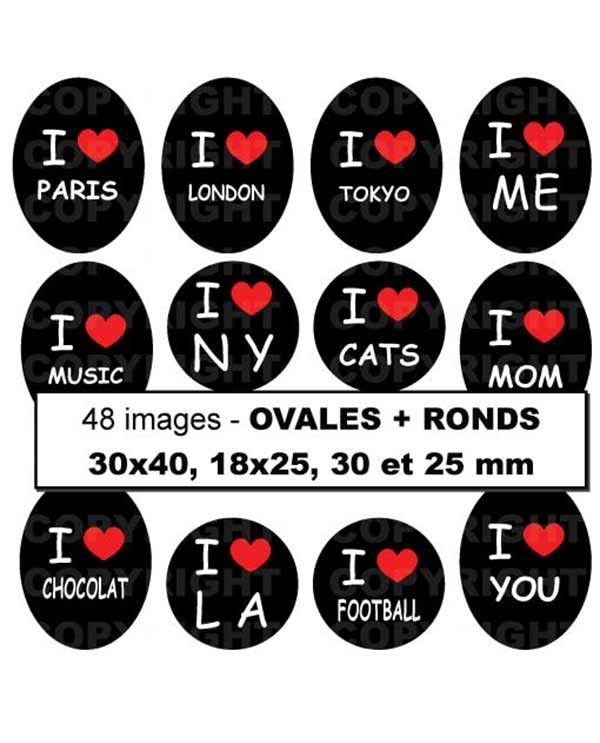 48 images digitales pour cabochons à imprimer vous-même