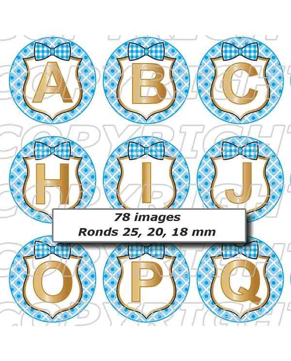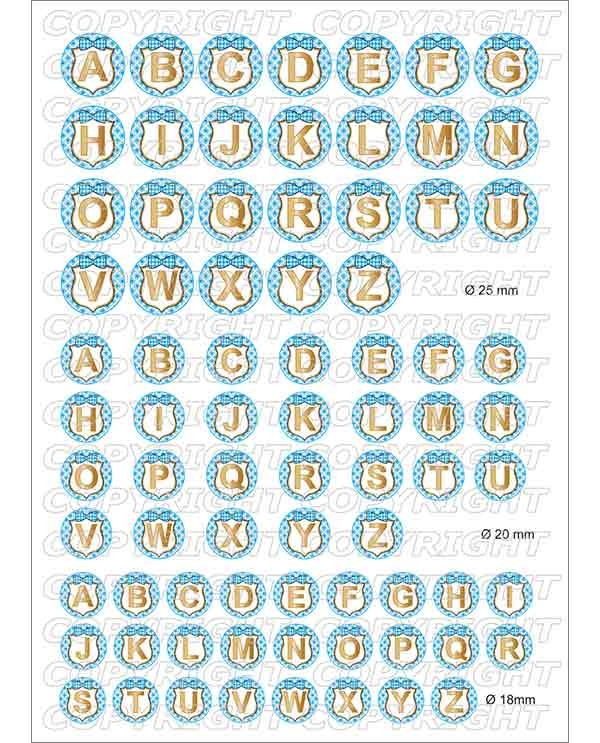 les 26 lettres de l'alphabet déclinées en 3 formats ronds :