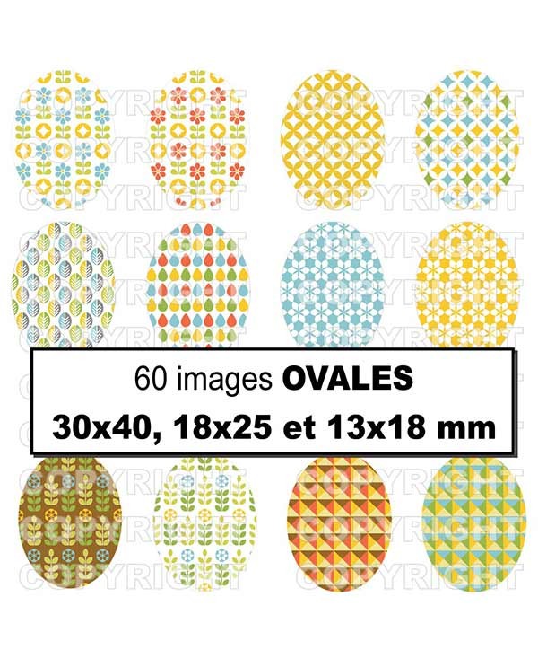 12 images différentes déclinées en 3 formats ovales :