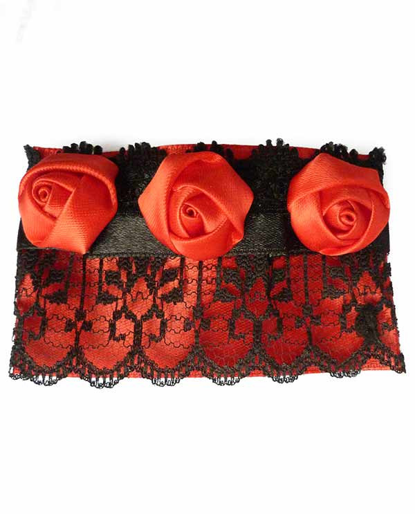 cette pince à cheveux qui se clipse rapidement dans les cheveux, avec sa base standard, associe l'élégance d'une dentelle noire de qualité avec un satin contrastant et mettant en valeurs ses motifs. 3 fleurs rouge donne un air romantique juste ce qu'il faut.